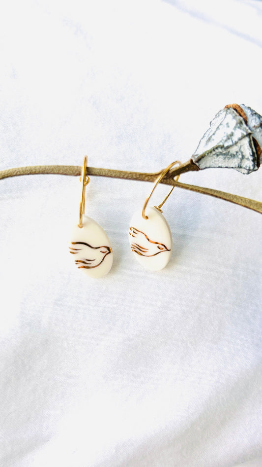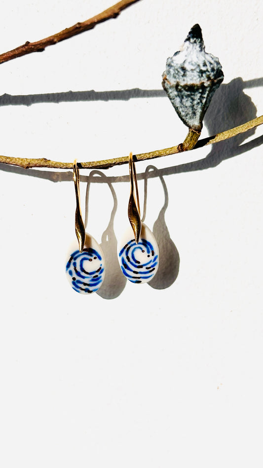 Porcelain Wave Earrings — Handcrafted Ceramic Ocean‑Inspired Jewelry with 22 k gold luster