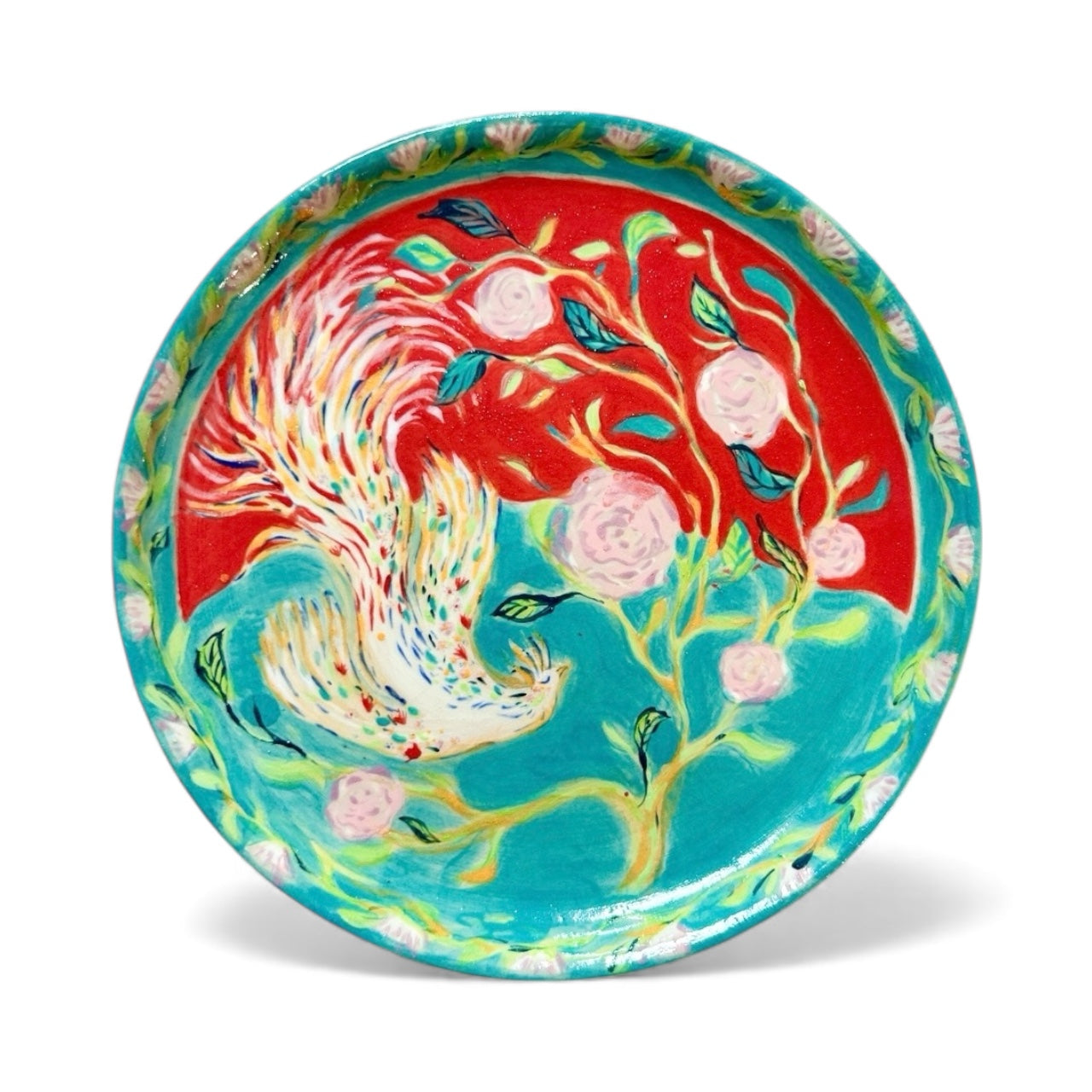 Assiette Phoenix et pivoines « volant à travers le feu »